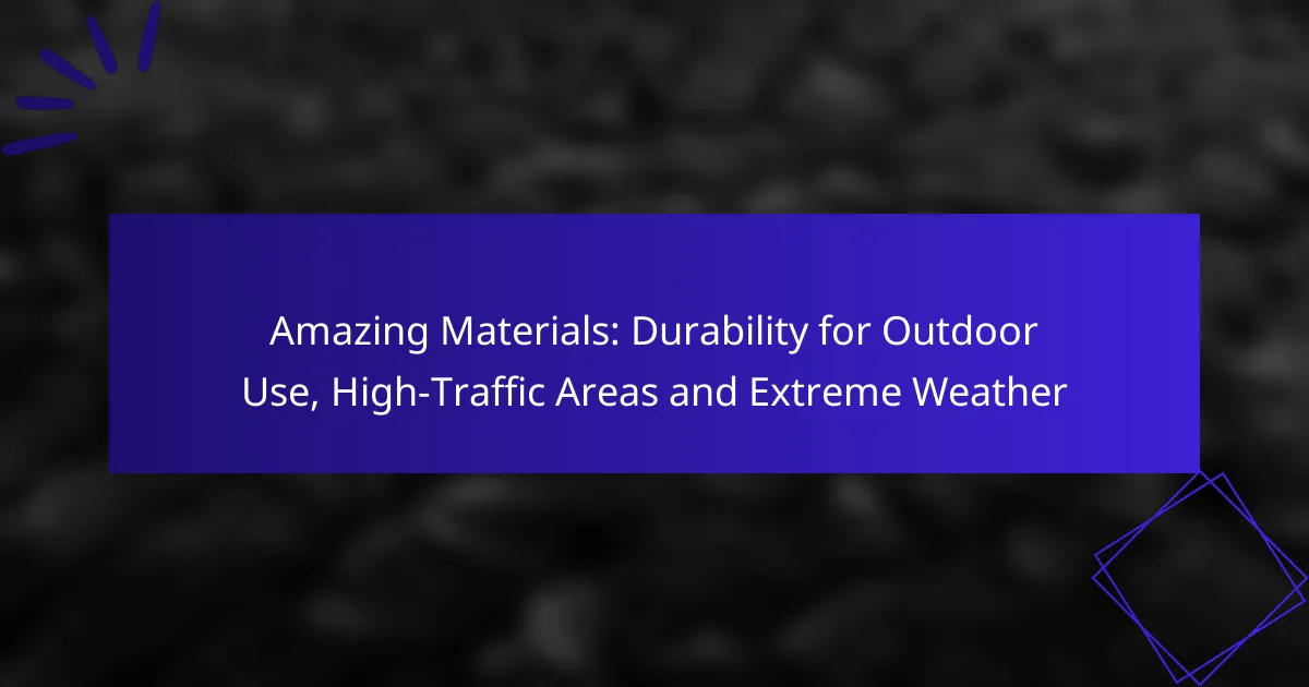 The best materials for outdoor durability are those that withstand harsh weather, resist wear from high traffic, and require minimal maintenance. Options such as composite decking, fiber-reinforced concrete, weather-resistant metals, high-density polyethylene, and natural stone are all excellent choices for various outdoor applications.