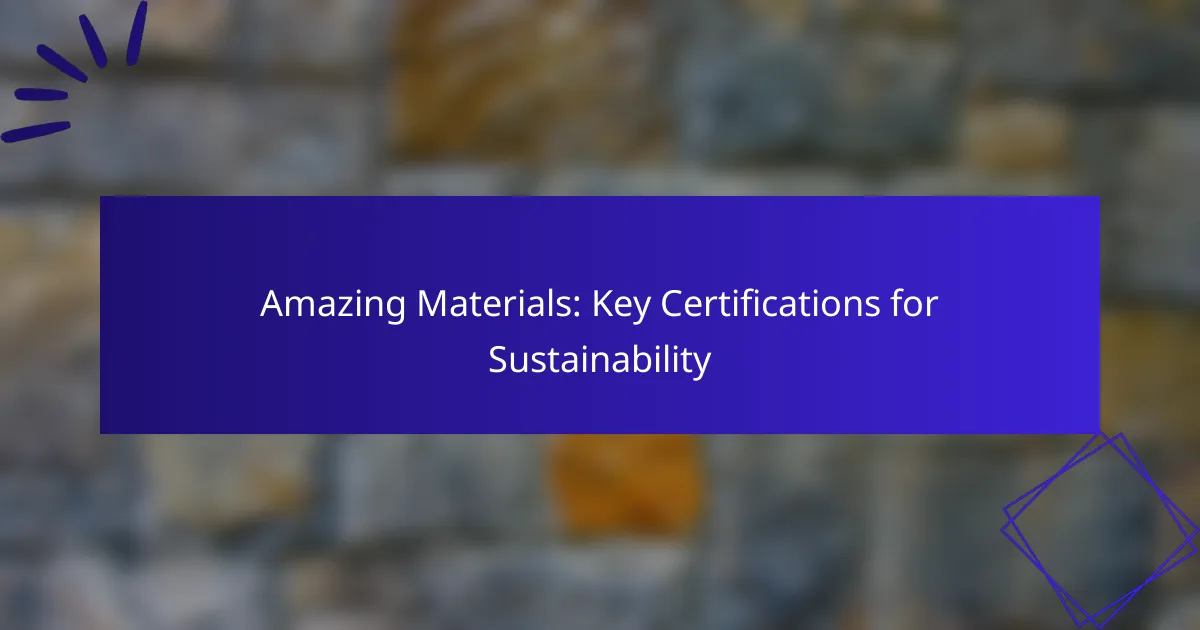 Key certifications for sustainable materials indicate that products meet specific environmental and social standards. These certifications help consumers identify eco-friendly options and encourage manufacturers to adopt sustainable practices.