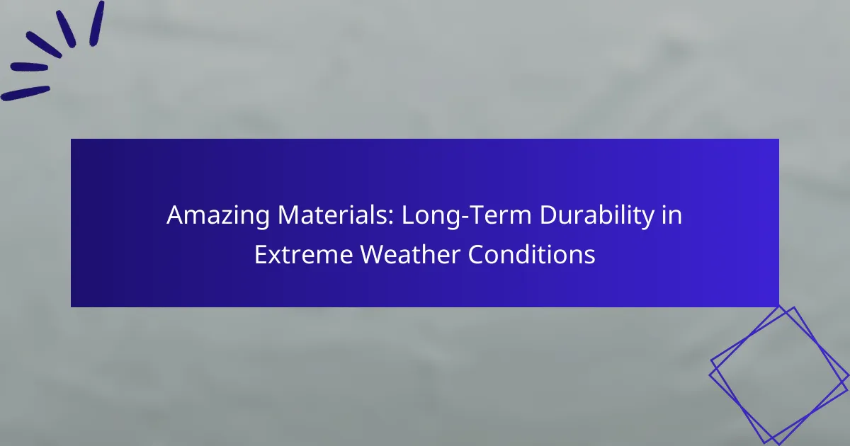 Materials that provide long-term durability in extreme weather conditions include fiberglass composites, polycarbonate panels, stainless steel, high-density polyethylene, and concrete with additives. These materials are engineered to withstand harsh environments, ensuring longevity and performance in various applications.
