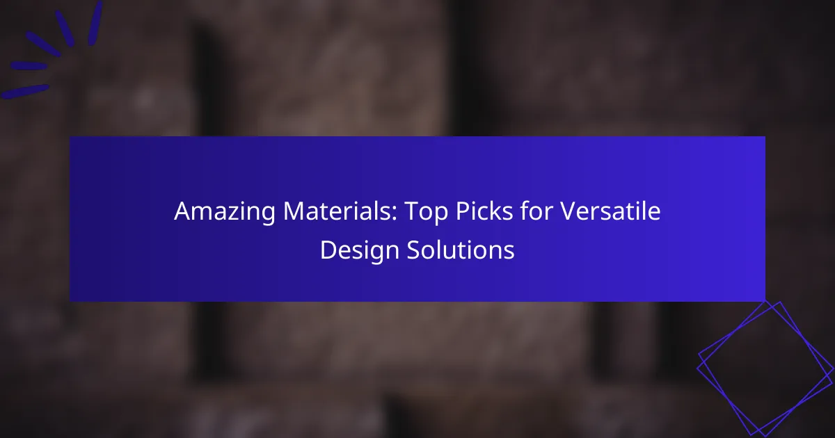 The best materials for versatile design solutions include recycled plastic, bamboo, stainless steel, concrete, and glass. Each of these materials offers unique properties that can enhance functionality, aesthetics, and sustainability in various design applications.
